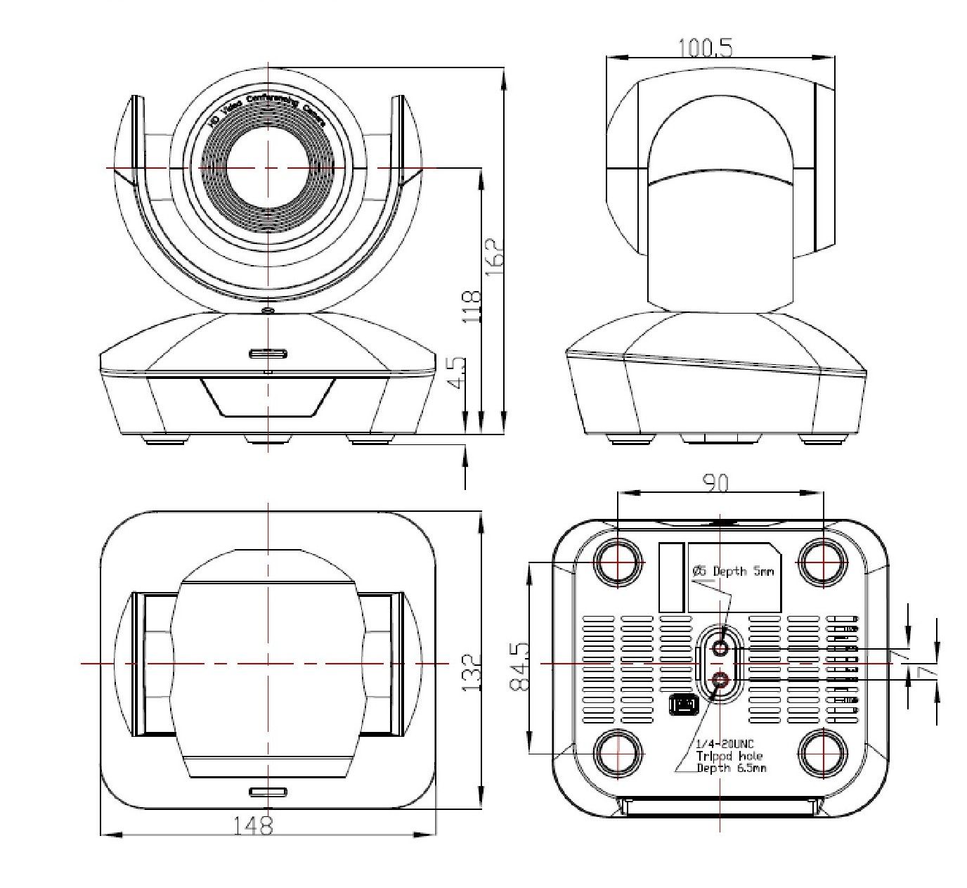 PTZ-видеокамера имеет разрешение изображения FullHD 1080p 60 кадров в секунду, 10-кратный оптический зум, 12-кратный цифровой зум и угол обзора 62,5⁰. Подключается к компьютеру через USB 2.0.